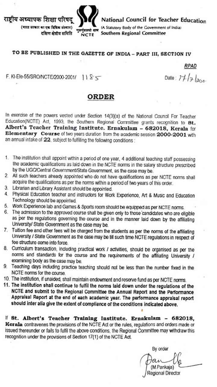 St.Albert's ITE is committed to the pursuit of excellence in teacher education, character building, overall development of personality, fired with a spirit of service and higher values.
